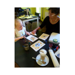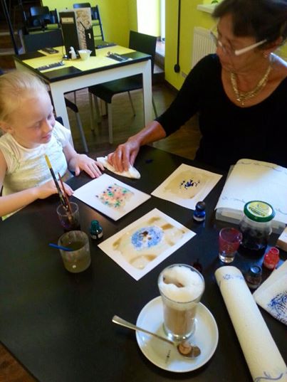 Auch im Samocca drehte sich an diesem Tag einmal mehr alles um das Thema „Kaffee“. Vormittags konnte man nach Herzenslust mit frisch geröstetem Kaffee an unserem Samocca-Buffet schlemmen. Kunstinteressierte zog es zu den von Antje Henkel-Ludwig ausgestellten Bildern und Frau Kampczyk zauberte aus den Bildern unserer kleinen Gäste herrliche Aquarelle aus Farbe und Kaffee.