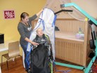 Der transportable Lifter ermöglicht RollstuhlfahrerInnen die Nutzung des Pflegebettes im Gruppenraum, aber auch des vorhandenen Wasserbettes im Ruheraum für Therapiemaßnahmen.