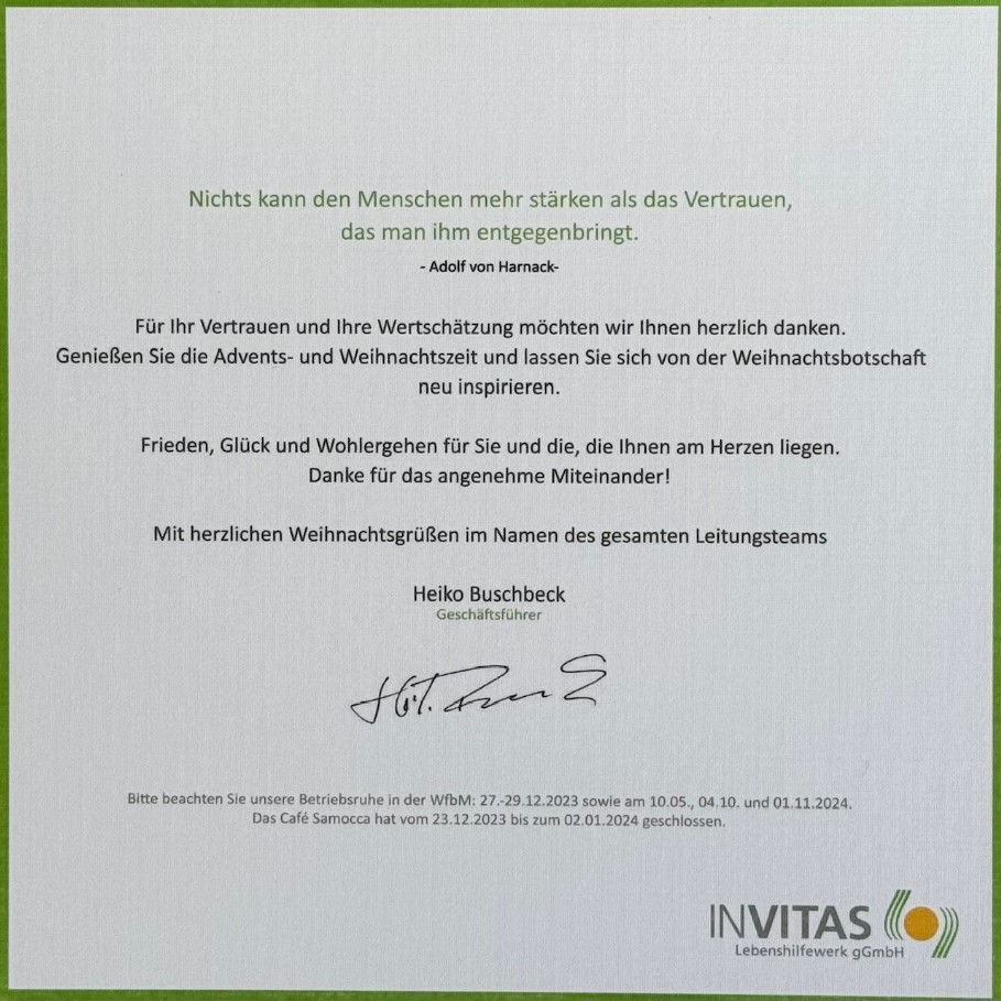 GEILE KISTE! DANKE INVITAS LEBENSHILFEWERK