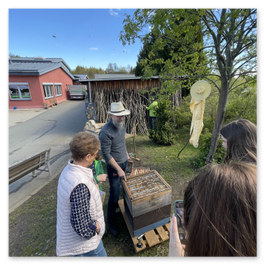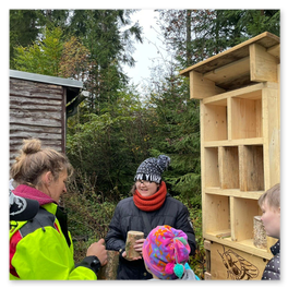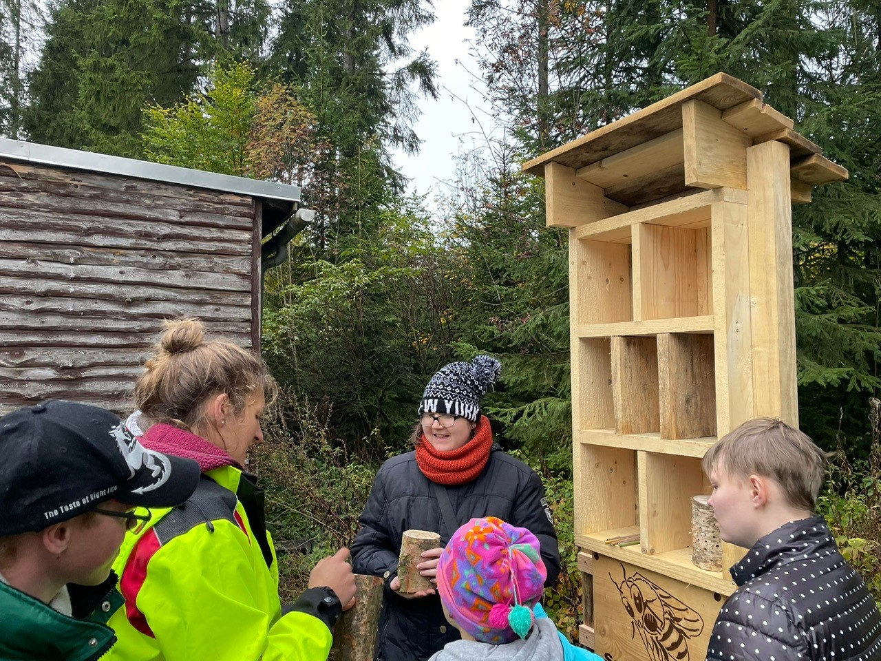Dafür konnten wir die Leiterin des Forstrevieres Bockau Frau Borowski als fachkundige Verantwortliche gewinnen. Unter ihrer Anleitung konnten die Teilnehmenden Materialien für ein Insektenhotel sammeln und auch befüllen.