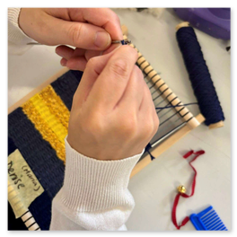 Mittlerweile haben bereits mehrere Workshops in den Werkräumen der Fakultät in Schneeberg stattgefunden. Erste Ergebnisse an kleinen individuellen Webrahmen entstehen mit viel Geduld, Konzentration, Ausdauer und Verständnis füreinander. Gemeinsam wird geplant, überlegt, gewebt, geübt und auch gelacht.