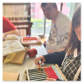 Der Prozess ist vielfältig und eine große Bereicherung. Im weiteren Projektverlauf sind nun auch Arbeiten an großen Webstühlen geplant, um gemeinsame kreative Werke zu schaffen.